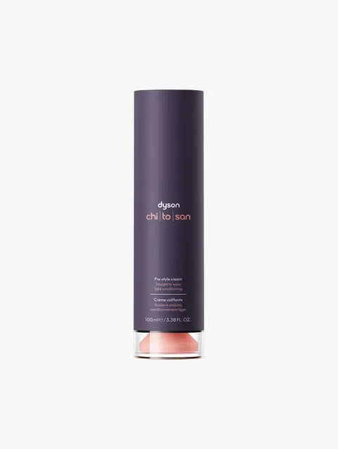 Dyson Chitosan™ Pre-Style Cream delivers flexible hold for naturally straight to wavy hair with minimal weight. Formulated with chitosan—a powerful macromolecule derived from oyster mushrooms—this lightweight cream locks in your style strand by strand while maintaining natural movement throughout the day. Enriched with grapeseed and argan oils, it provides gentle conditioning without compromising volume, making it ideal for finer hair textures. Choose this light conditioning variant to achieve all-day flexibility with effortless style control.